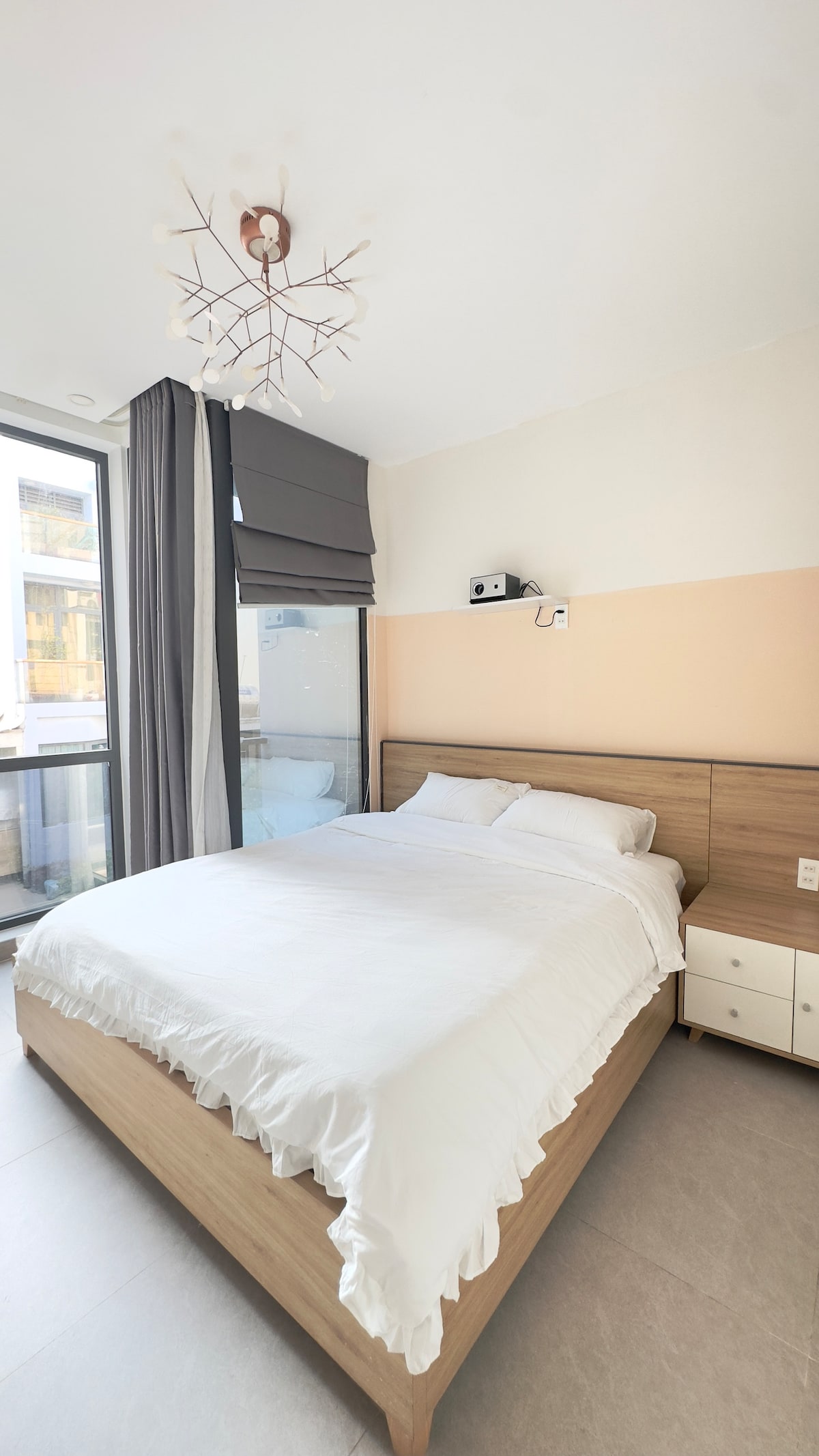 MOD House serviced apartments are located just a 5-minute drive from Tan Son Nhat Airport, in a quiet residential area with car access. Only a 5-minute walk to Hoang Van Thu Park. Surrounded by convenience stores, supermarkets (Maximark), and breakfast eateries suitable for guests traveling near the airport for business purposes. The property features an automated and individualized check-in system for each guest. Guests are free to come and go as they please during their stay.