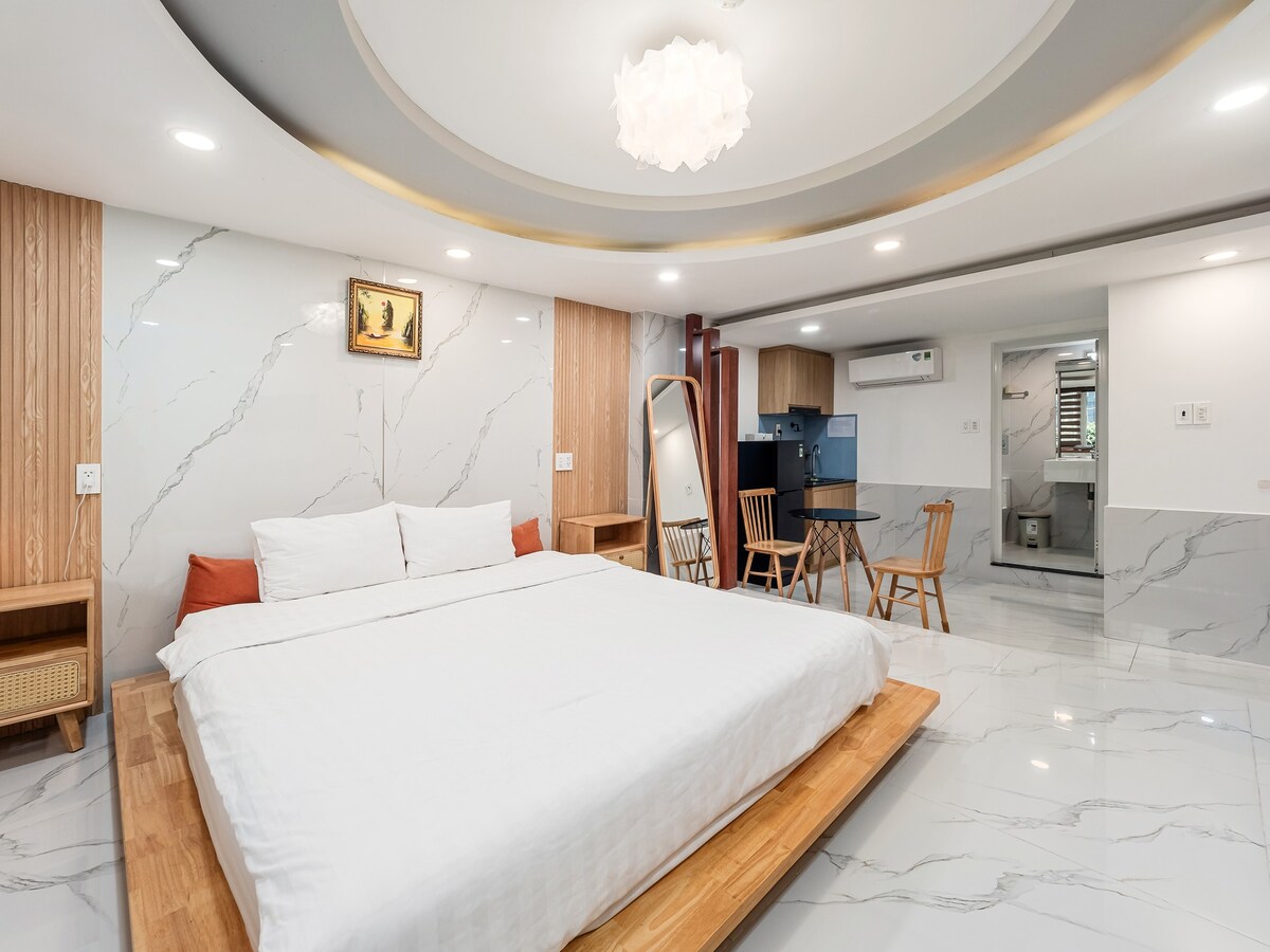 Căn hộ Studio tại Phổ Quang mang đến sự kết hợp thú vị giữa sự thoải mái, tiện lợi và hiện đại. - Nằm ngay trung tâm Tân Bình, cách sân bay Tân Sơn Nhất khoảng 5 phút đi đường, nhưng ẩn mình giữa con hẻm yên tĩnh. Bên cạnh là khu chung cư cao cấp Botanica, các tiện lợi khác như GS25, Quán cafe, Hồ bơi, phòng Gym.. chỉ cách vài bước chân. - Thiết kế của chúng tôi hướng đến sự yên bình giữa thành phố nhộn nhịp. Căn hộ được trang bị đầy đủ tiện nghi; với rất nhiều dịch vụ tiện ích và tiện nghi.