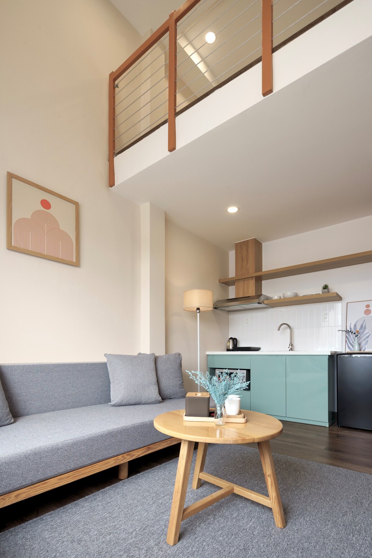 ✻ A studio apartment (30m2) features 1 king bed (1.8m) and 1 twin bed (1.2m) ✻ Located in the heart of the city, plenty of famous landmarks, food and drink nearby ✻ Air-conditioning available ✻ Fully equipped kitchen, washing machine, iron, hair dryer, etc ✻ Smart TV 40 inch. Fast wifi internet. Laptop friendly work space ✻ Free car parking on premise. ✻ 24/7 front desk support. Motorbike & car for rent, airport shuttle