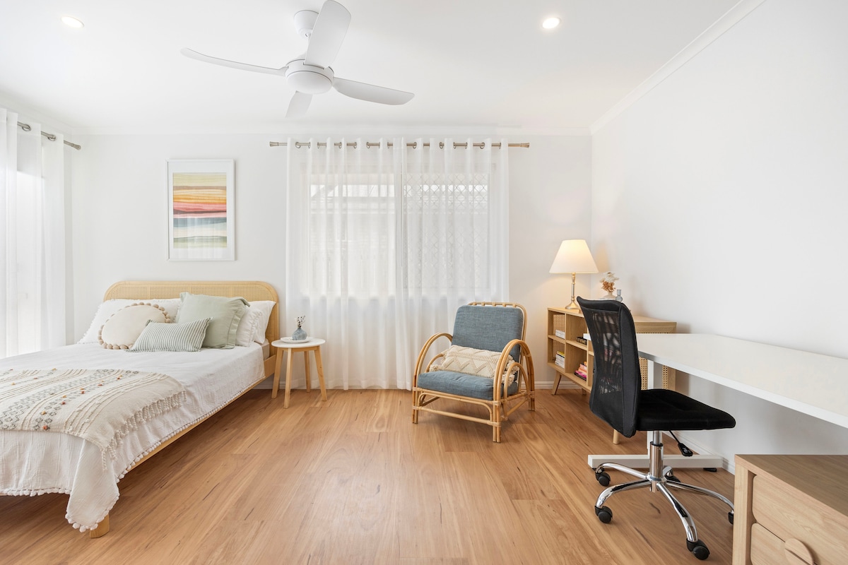 Welcome to our lovely, fully self-contained studio apartment — your own tropical sanctuary. Fresh and clean, the studio has everything you need for a comfortable and relaxing stay. The studio is located in the backyard of our home, converted to host guests. You’ll enjoy a private entrance and your own peaceful space, separate from the main house. Step outside to a tranquil deck, perfect for enjoying a cuppa or an evening glass of wine. 🚭 Please note: This is a non-smoking property.
