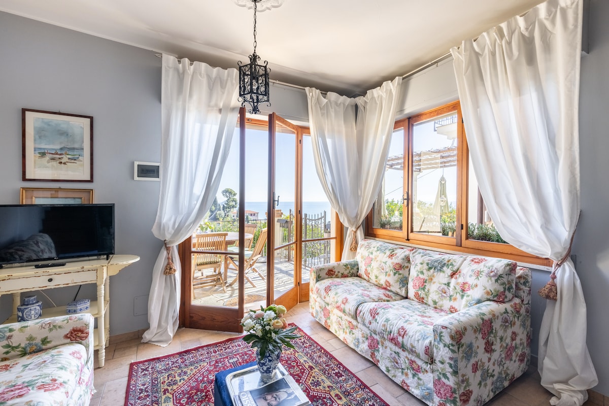 Two-room apartment consisting of a double bedroom, a living room with kitchenette and a bathroom. Recently furnished. Equipped with a private entrance to the villa, large terrace overlooking the sea, private parking and air conditioning. Possibility to reach the city center in 10/15 min on foot. Free Wi-Fi and 2 complimentary coffees per person per day. A SCOOTER INCLUDING 2 HELMETS IS AVAILABLE TO CUSTOMERS WITH GOOD DRIVING EXPERIENCE, AT NO EXTRA CHARGE! National Identification Code (CIN): IT009001C2WGAKBNS7
