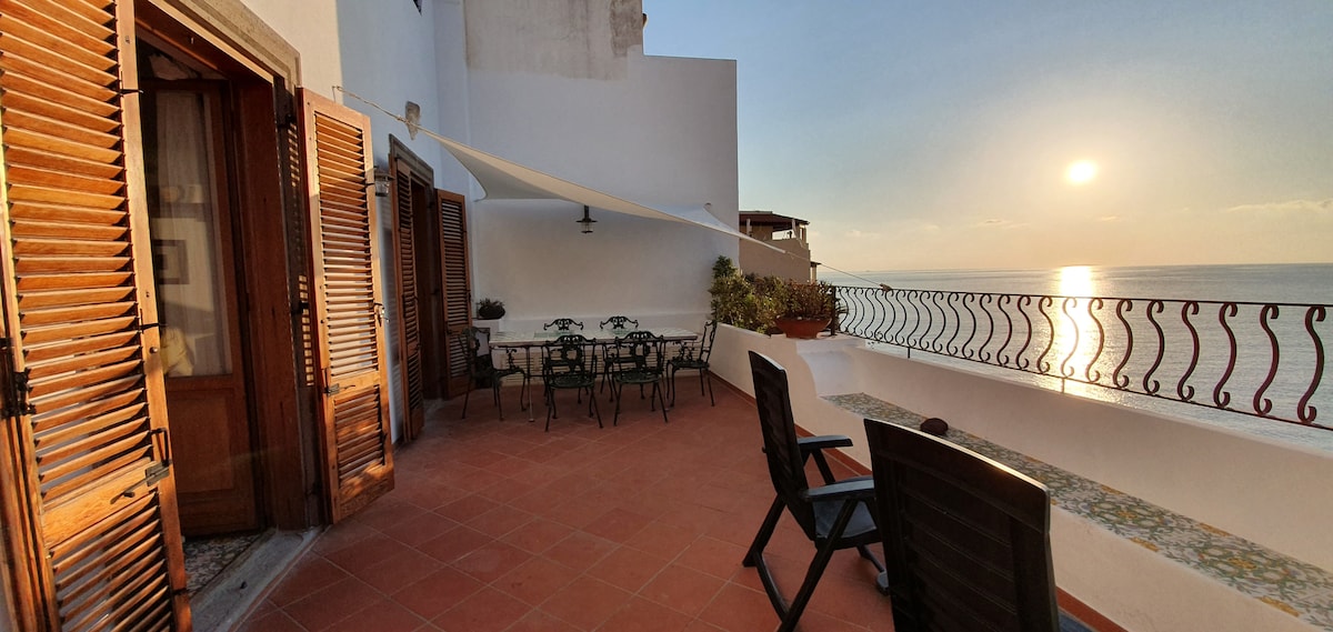 The apartment is part of the house where the sole owner lives, consisting of a large bedroom with a double bed that can be separated, air conditioning, an anti-bathroom, a full bathroom with a shower, a kitchen equipped with everything you need, sofa and television. In addition, a large terrace overlooking the sea with a covered part for lunch and relaxation and a wonderful view of Panarea and Stromboli. A private staircase leads to the beautiful bay below with a wonderful sea.