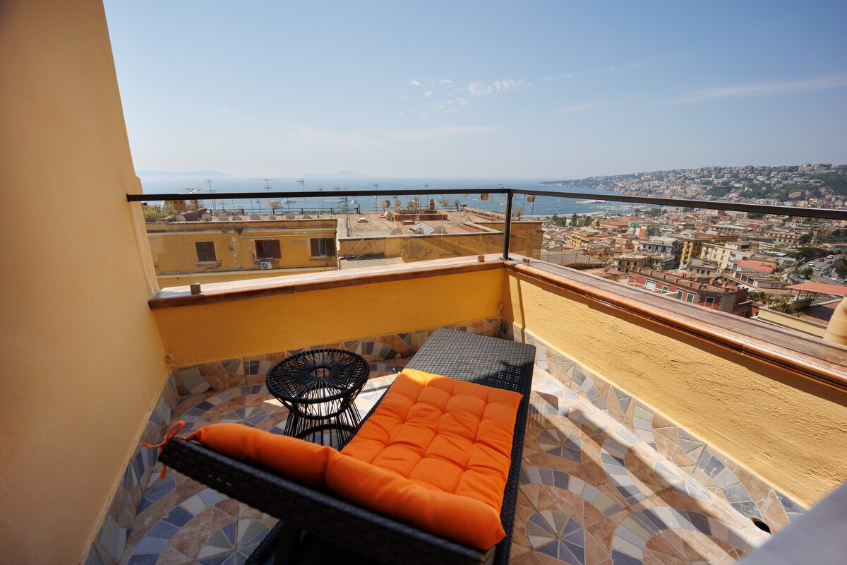 The Terrezza Augusteo is just what you need for your holiday. The apartment is located just 30mt from Via Toledo, 50mt from the Galleria Umberto I and 150mt from Piazza Plebiscito. The building is surrounded by beautiful and picturesque restaurants, shops and historic monuments. The apartment has just been refurbished, and it has all you need to have a comfortable stay. Even though it is located in a busy environment, it is very peaceful and quiet. 4th floor (no lift).