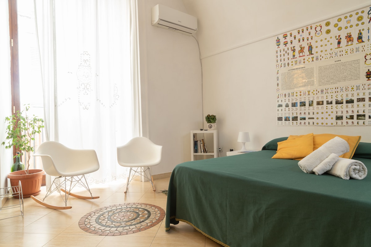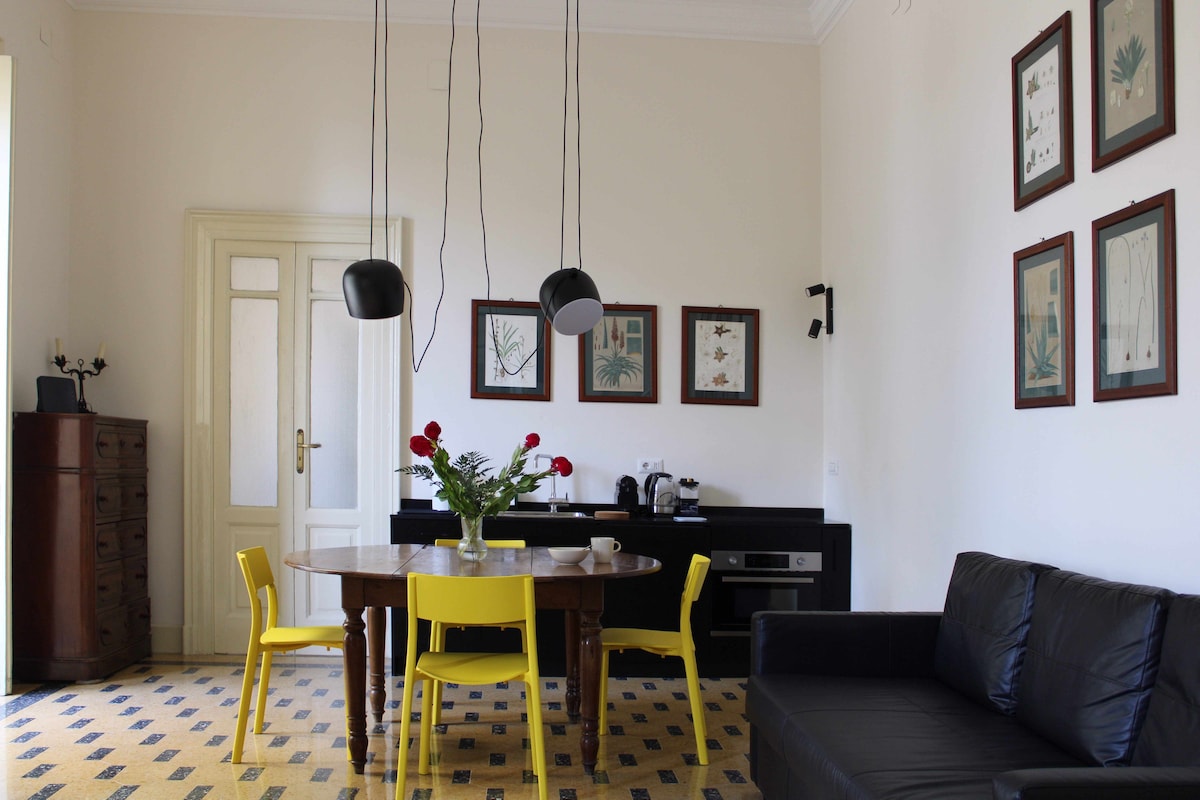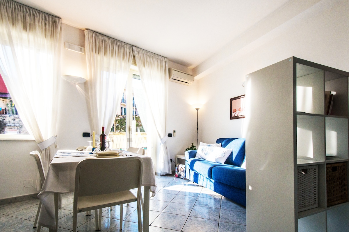 Apartment perfect for a couple or for a small family. Elegant and fully equipped, with a huge rooftop with a panoramic view. It’s located in front of the sea and the Castle. Only 5 minutes walking to Piazza del Plebiscito and the dock, furthermore it is close to bus stops, markets, restaurants and the metro station. Many years of experience hosting people from all over of the world.