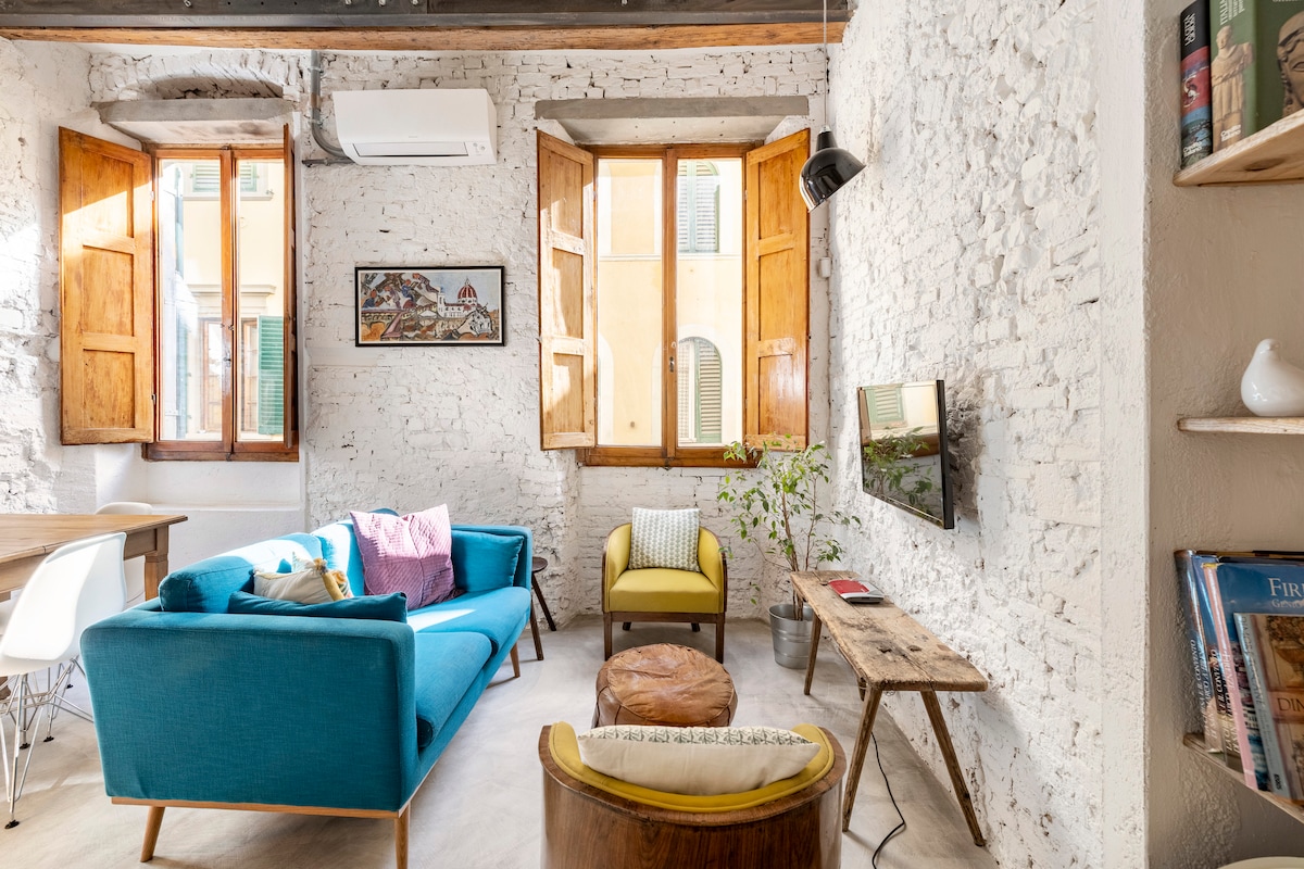 📍 In the heart of downtown Florence, in the heart of one of its most authentic neighborhoods: Sant'Ambrogio. Next to the majestic Basilica of Santa Croce, where Galileo Galilei and Michelangelo rest, you can stay in this spacious apartment. A finely-renovated apartment that has been in the family for 4 generations. We've preserved the wooden beams and stone walls of the original structure. It's a small museum that will grace you with beauty even when the day is over