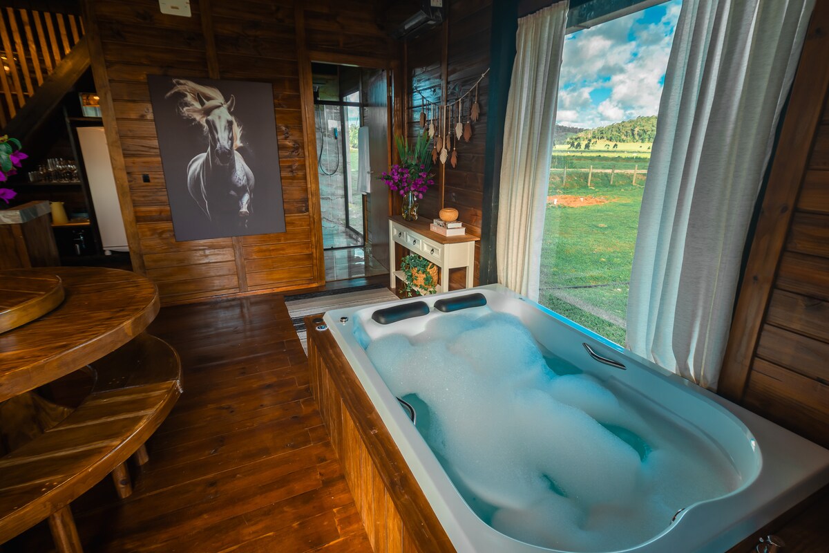 The Cabana is a first-floor apartment with a double whirlpool tub. • Double whirlpool tub • Air conditioning • Fireplace (1 free firewood refill - June/July and August) • Fiber optic Wi-Fi • 43' Smart TV • Stove and mini-fridge • Dishes/utensils • Barbecue grill • Bed linens/towels • Markets and everything else nearby ❤️ Celebrating something? We have optional packages with romantic decorations, find out more!