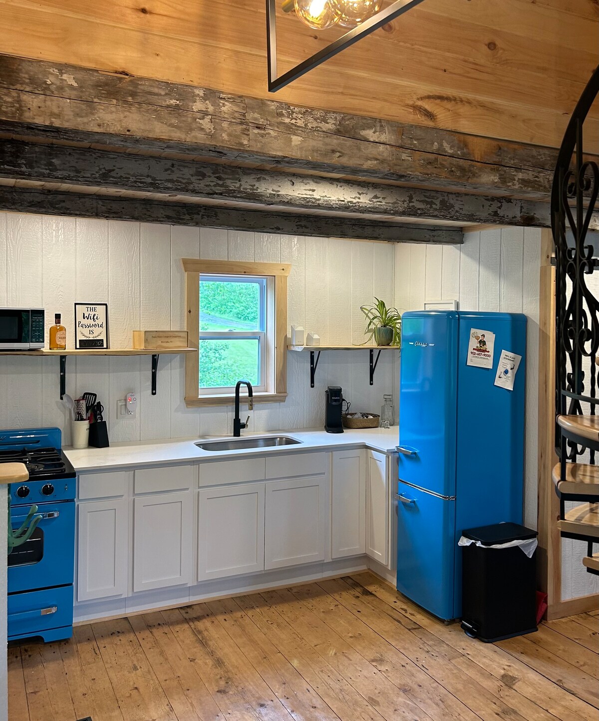 The “Kenzie B” cottage is a newly built cottage with unique features throughout like a sliding steel barn door, a steel shower and old barn beams along the ceiling. The covered veranda off the front of the cottage provides you with stunning views of the tidal river and a private hot tub overlooks the river as well. Swim, boat, float, whatever you wish, the river awaits! We also have a motorized floating picnic table for rent if you'd like to explore the river some more.