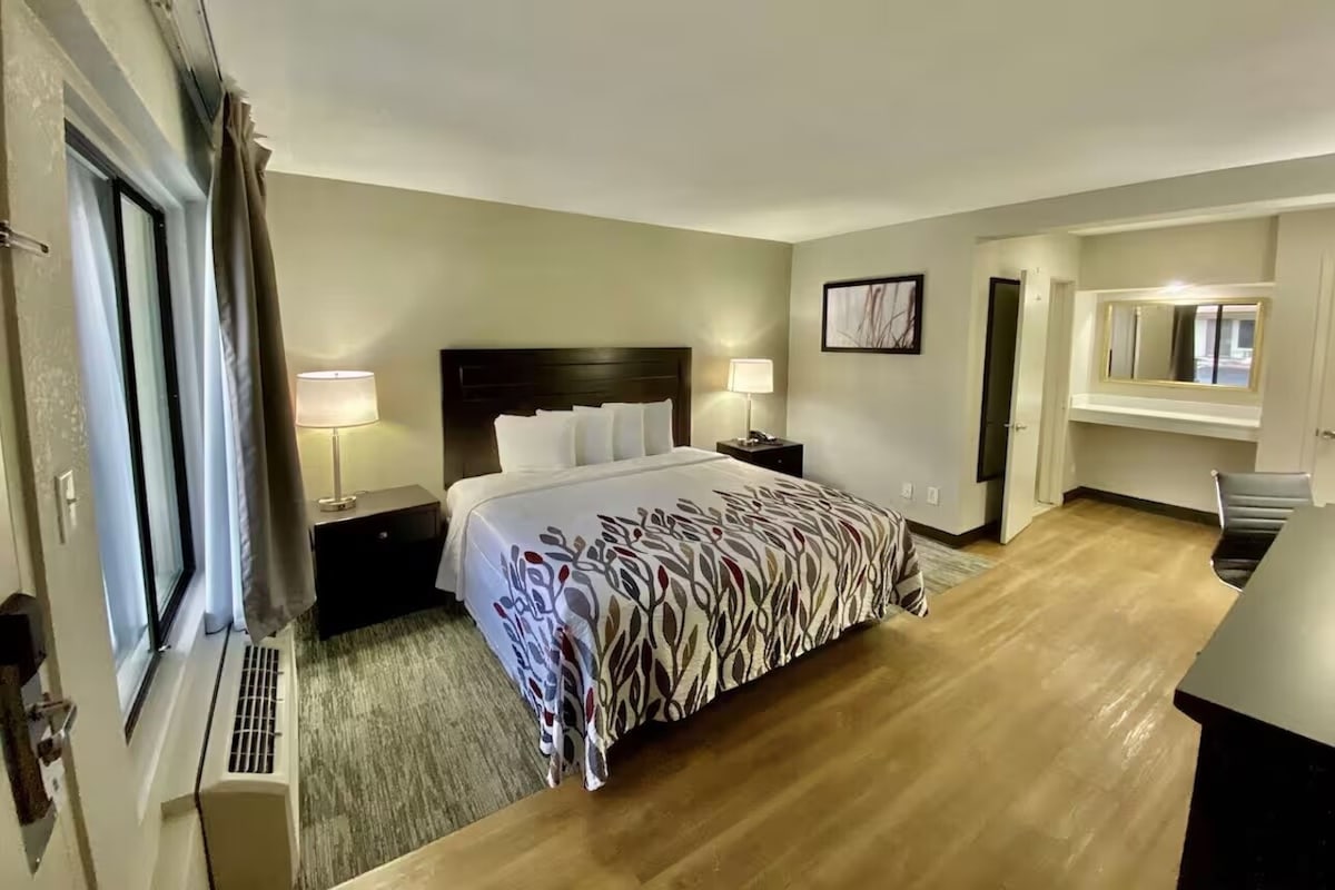 Experience a relaxing stay in this modern King room designed for comfort and convenience. Enjoy essential amenities including a micro-fridge, plush bedding, free Wi-Fi, and a calm non-smoking atmosphere. Ideal for business travelers or couples looking for restful nights and easy access to downtown Tucson.