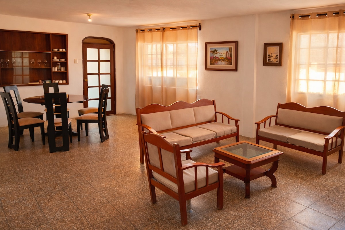 Experience Chiclayo from its safest and most exclusive area! Located in the Jockey Condominium, opposite the Yortuque promenade, and just 5 minutes from the Real Plaza and the Airport. The apartment is ideal for families, tourists or business trips. We offer 2 modern rooms, a cozy living room, a dining room, an equipped kitchen, an impeccable bathroom and parking (subject to availability). Enjoy WiFi for remote work and 24/7 private security. Comfort and the best location in the City of Friendship.