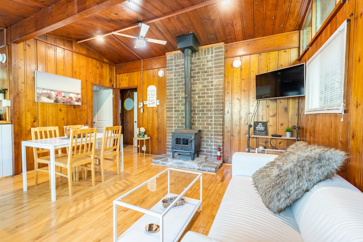 Welcome to our sweet little Nordic spa - A Retreat away from the hustle and bustle! Two bedroom year round beautifully curated A-frame cottage, with sauna, barrel hot tub & cold plunge. Enjoy a relaxing stay in our peaceful cottage for your Lambton Shores/Grand Bend, Ontario trip. The unit is equipped with AC, gas fireplace, Wifi, full kitchen, workspace, lounging patio. Our cottage is 15min away from Grand Bend beach, less than 10min to The Pinery. We look forward to hosting you!
