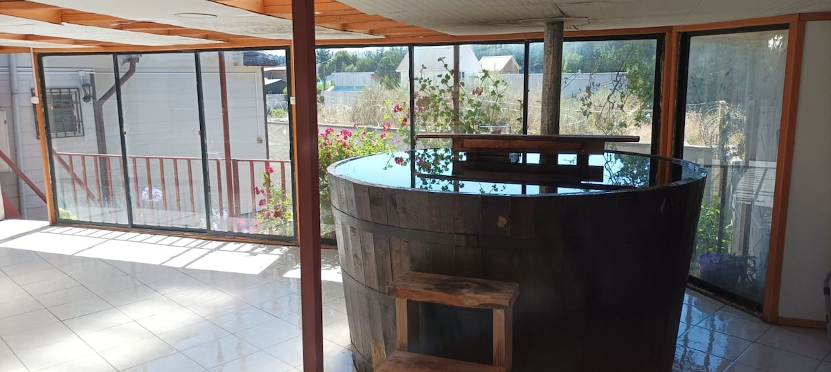 Nice and spacious house two blocks from the beach. We have a 3x2 hot tub for 10 people, where you will have a relaxing and peaceful experience, additional value $25,000.-daily. Gift of one night in the hot tub in February. Very well-equipped house, includes wifi, cable, washer-dryer, large refrigerator, charcoal grill, covered barbecue and large terrace. Pets allowed. Bed linen and towels are included.