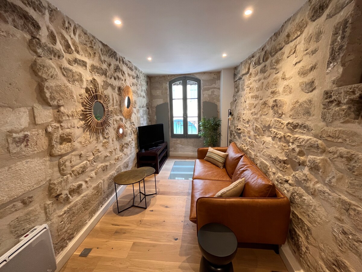 Enjoy a stylish, air-conditioned home in the historic center of Avignon, with the main monuments a 5–10-minute walk away. Recently renovated while preserving the building's character and fully equipped to accommodate 2 people, it combines modern comfort with authenticity to meet all your needs. Its ideal location will allow you to enjoy the benefits of the city center while being in a quiet area. Photo credit: Christophe Abbes