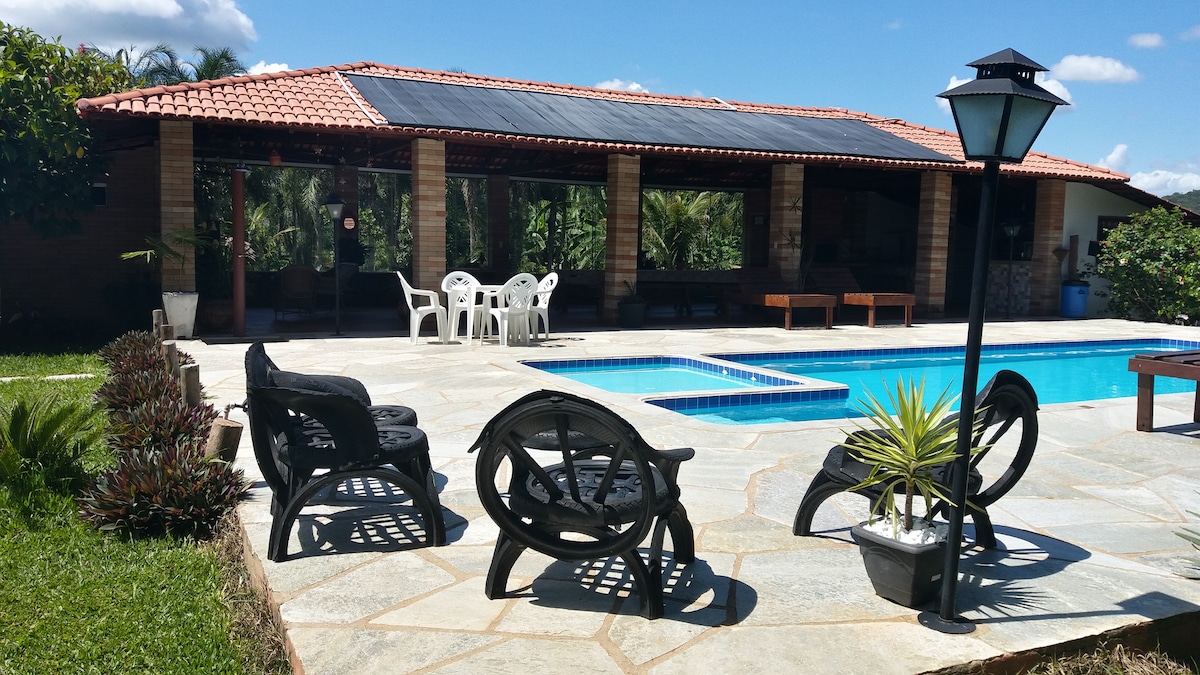 A great place for those looking for peace and quiet as we are located just 6 km (just 200 meters on a dirt road) from the Historic Center of Pirenópolis. -House with two en-suites - Air-conditioning in the bedrooms -Wi-Fi -Full Gourmet Kitchen - Recreation space (soccer/volleyball) -Solar heated pool - space for a bonfire - TV (bedrooms/leisure area) - hammocks for resting - A place with plenty of space and privacy -Location allows hiking in nature - Pets are welcome - Games