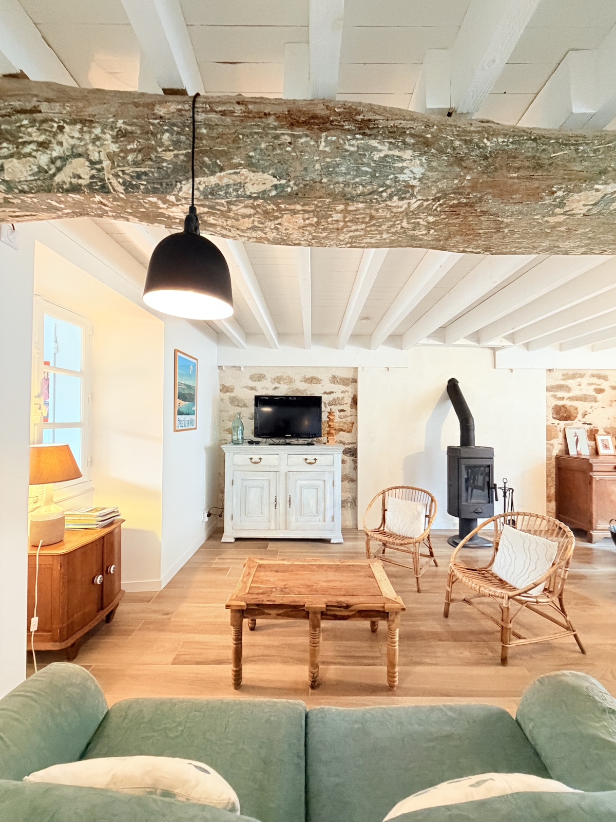 Drop off your bags and enjoy! ✨ Our house welcomes families and friends with 3 cozy bedrooms upstairs (queen size, double and 2 single beds) and a bathroom. Downstairs, a bright living room with open kitchen for cooking, laughing and sharing, a second bathroom and a glazed area overlooking the garden. Warm atmosphere and good times guaranteed! 🏡💛