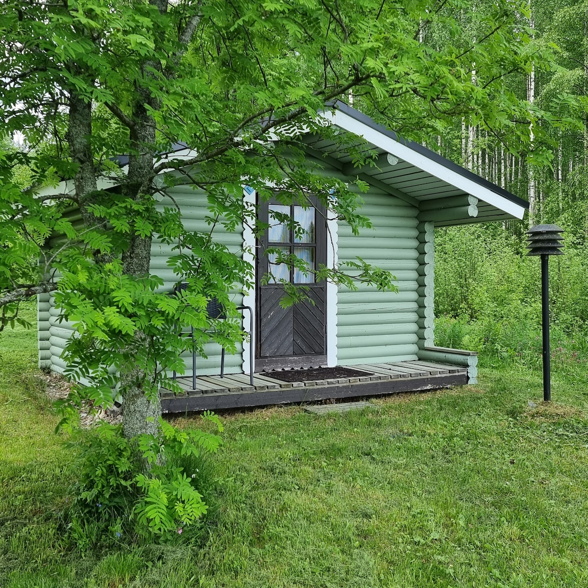 Cozy summer cottage on the shore of a clean and quiet lake for a peaceful holiday. Suitable for a couple or a small family. The main cottage has a small kitchen and bedroom (140cm bed), sauna and dressing room. The large covered terrace is a great place to dine and enjoy your morning coffee in the sun. The courtyard also has a 160 cm double bed. Composting toilet. Nice sandy beach for swimming. A rowboat and 2 paddleboards are available.