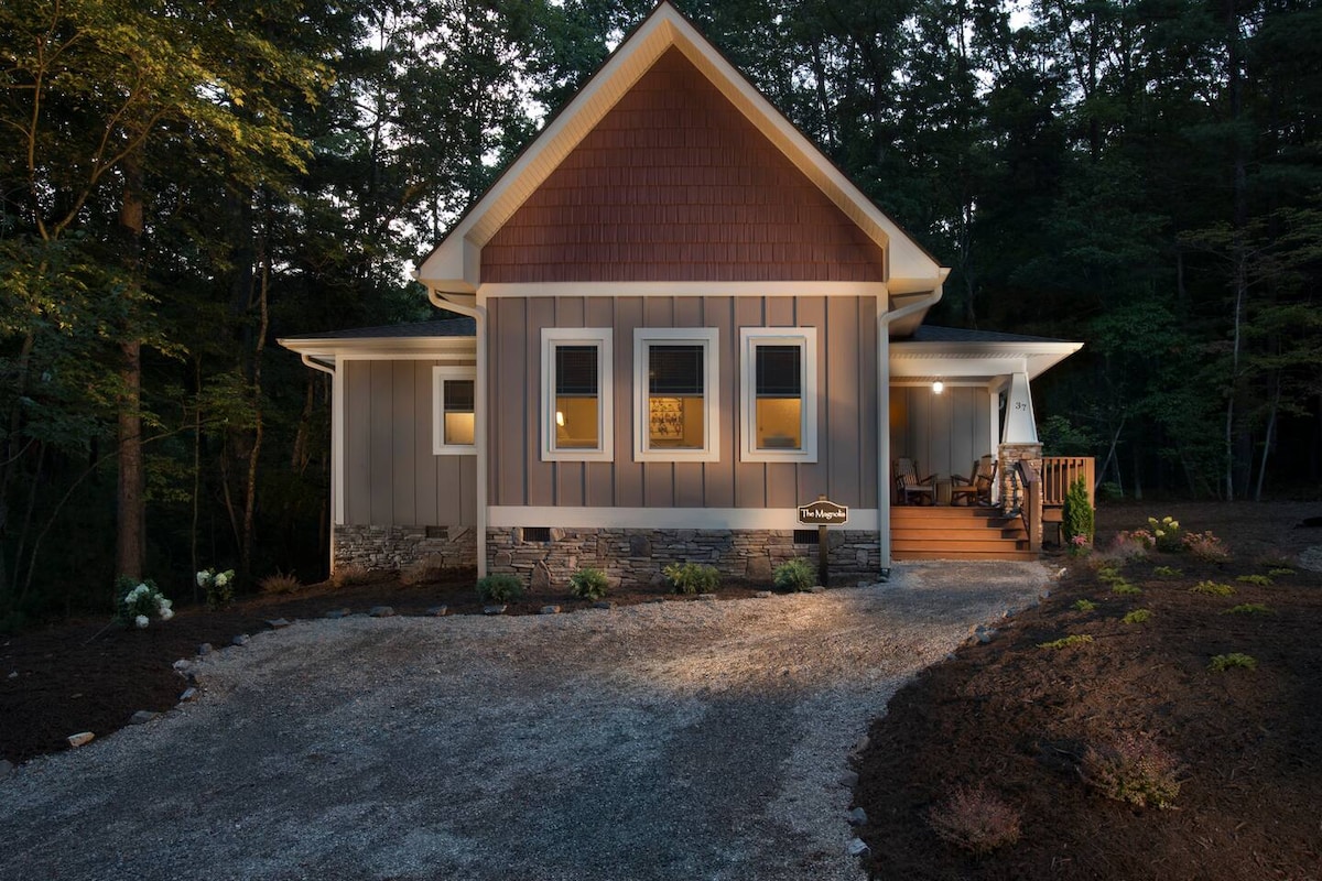 Come unwind and enjoy your very own charming mountain getaway. Our cute modern cottage is located in a quiet neighborhood a short walk to downtown Weaverville which is fully opened back up. The cottage boasts a rare combination of natural mountain setting with walking access to downtown Weaverville and a short drive to Asheville. Take a dip in the private hot tub, or a short walk through the Main Street Nature Park which leads you award winning art studios, shops and restaurants.