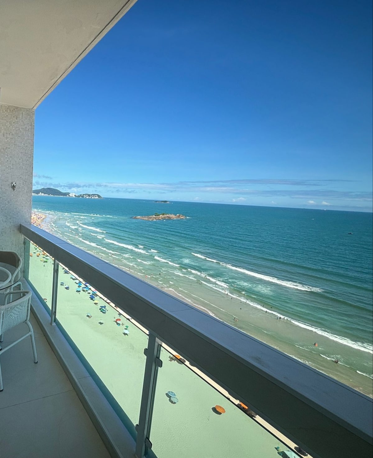 Design apartment with a unique view. From all the rooms you can see the sea, except from the bathrooms. Being only 30 meters from the breakwater, we have the sensation of being on the sea. From the balcony, where you can dine, you can see the entire seafront, Enseada, Pitangueiras and Astúrias.(URL HIDDEN) Certainly one of the most stunning views in all of Guarujá. On weekends, only reservations with a minimum of two nights will be accepted, and on extended holidays, at least 3 nights.