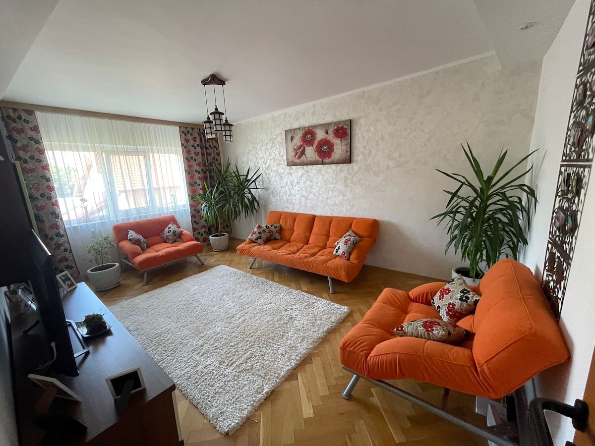 The house consists of 2 apartments, on 2 levels, with separate entrances and connected to each other on the interior staircase. Upstairs there is 1 bedroom (with double bed) + 1 living room (with an extendable sofa for 2 people) + 1 kitchen + 1 bathroom + 1 hallway (with extendable sofa). 400 lei/night Luxurious courtyard - gazebo, barbecue, pavilion for parties (10-15 people) + fireplace, rocking chair, sun loungers, other various relaxation areas.