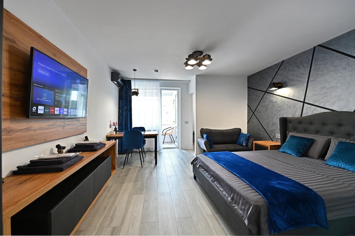 - We DO NOT issue a tax invoice. - We DO NOT accept escorts, companions, or other persons who are the subject of sexual services. The apartment is ultra-centrally located overlooking the town hall and Boulevard I. C. Brătianu. All new appliances, newly renovated. Luxury finishes.