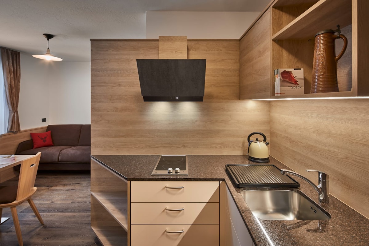 Komplett neu und modern eingerichtete Wohnung in sehr ruhiger Lage etwas oberhalb des Dorfes gelegen. Bietet einen wunderbaren Ausblick auf das gesamte Tal und auf die majestätische Bergkulisse der Dolomiten. Im Winter erreichen Sie in nur 2 Gehminuten den nächstgelegenen Skilift wo Ihnen im Skidepot Walter die Skiausrüstung sicher und umsonst aufbewahrt wird. Freuen Sie sich auf ein absolut entspanntes Urlaubserlebnis und auf erholsame Tage in gemütlichem Ambiente.