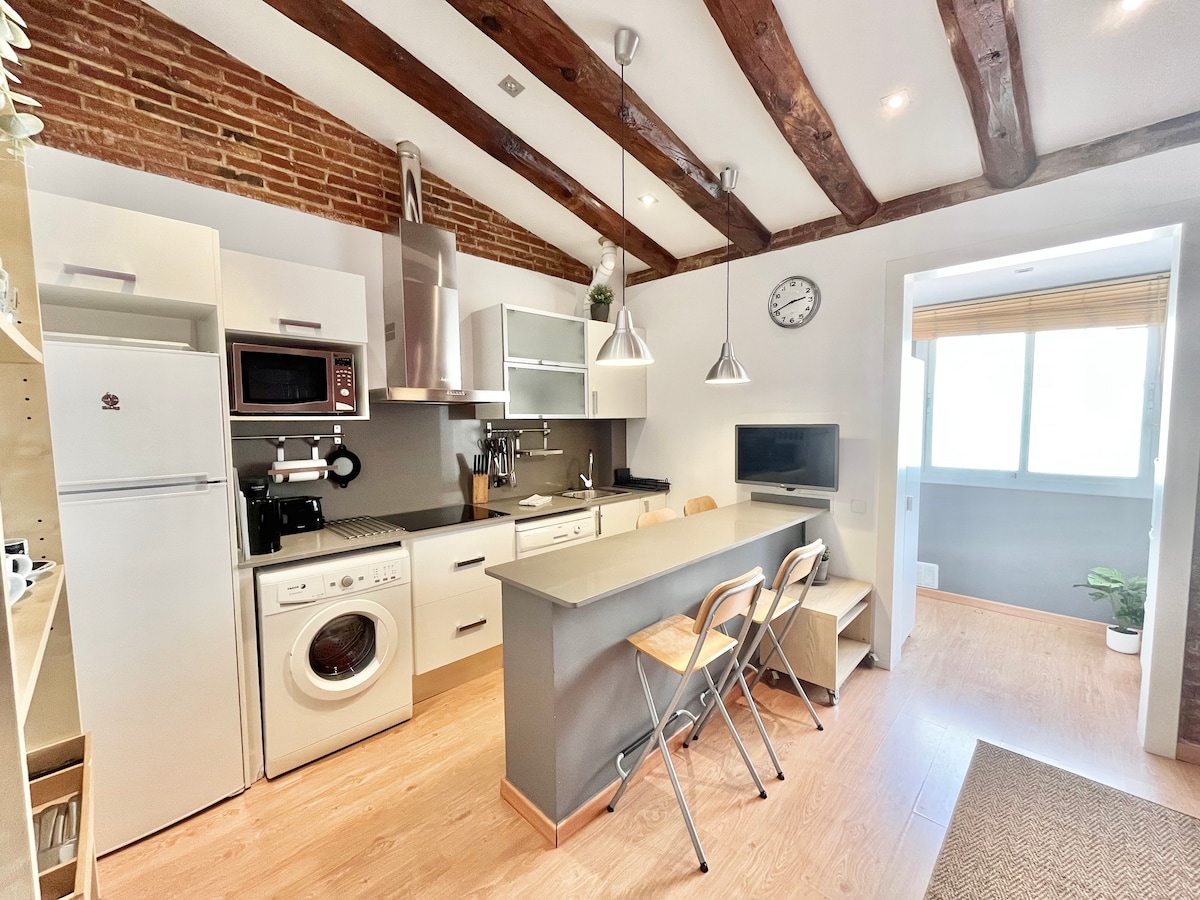 Charming fully exterior studio with balcony, completely renovated, located just a few steps from Passeig de Gràcia, ideal for discovering Barcelona. It consists of an open space with living room and kitchen, a modern bathroom, and a recent, high-quality double bed. The apartment is equipped with hot/cold air conditioning and free high-speed Wi-Fi. It is located on the first floor (counting the ground floor), and the building has an elevator, although you need to climb 5 steps to reach it.