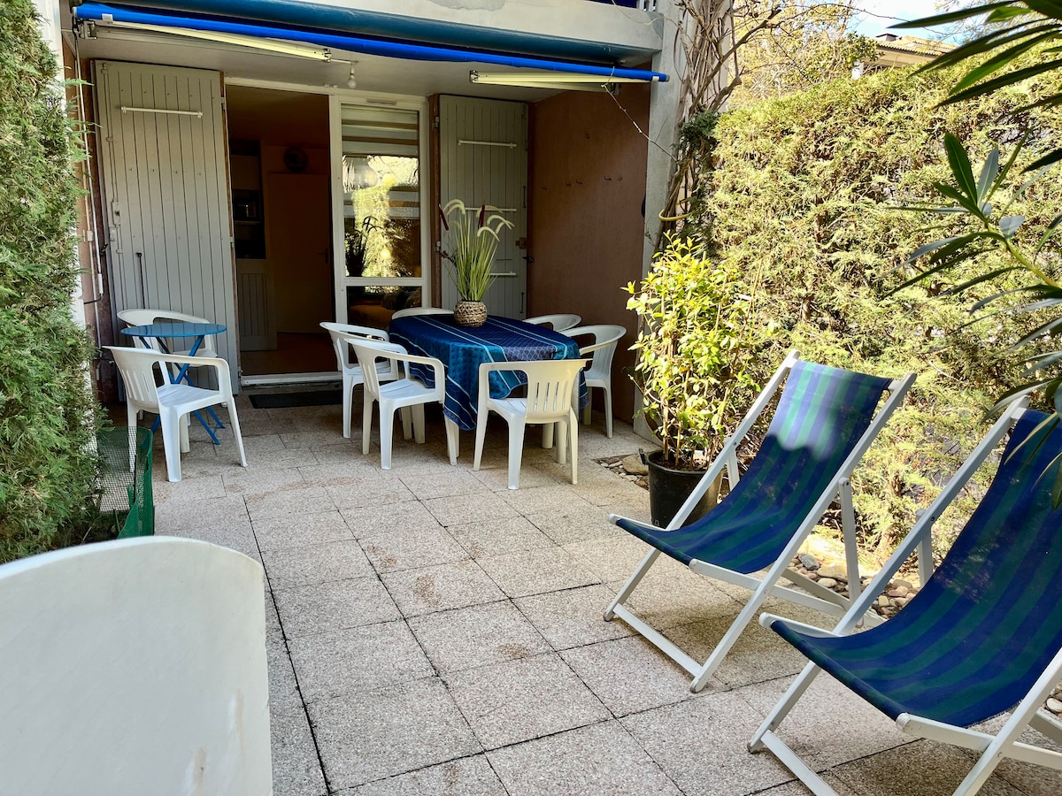 Ground floor studio of villa. Beautiful garden. 250 m from the sandy beach of Aiguebelle. Parking in property closed by electric gate Shared washing machine Free WiFi From June to September: stay from Saturday to Saturday In July and August, minimum stay of 14 nights In April, May and October, minimum stay of 4 nights