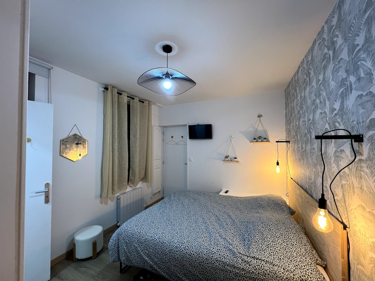 Superb apartment of 50m2 with kitchen open on living room with large cupboards, glass roof, 2 decorative fireplaces including one in pink marble and its authentic parquet floor. Equipped with all comfort with beach chairs and umbrellas😎. Blanc Craie where the ideal place between beach and town to spend an unforgettable time: one street from the waterfront and the Baths: the famous thalassotherapy center with its outdoor swimming pool with sea water heated all year round.