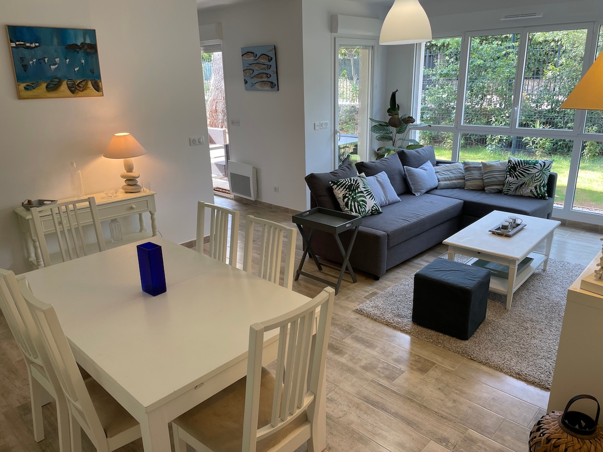 Individual studio with parking space and garden. The accommodation consists of a main room with closet, bed for 2 people 160 x 200, an equipped kitchenette (ceramic hob, microwave, fridge) and a bathroom with toilet. Bed linen and towels are provided. The studio is air-conditioned Close to all amenities (bakery, pharmacy, supermarket, bar, etc...) within walking distance Parking space provided in the garden out of sight.