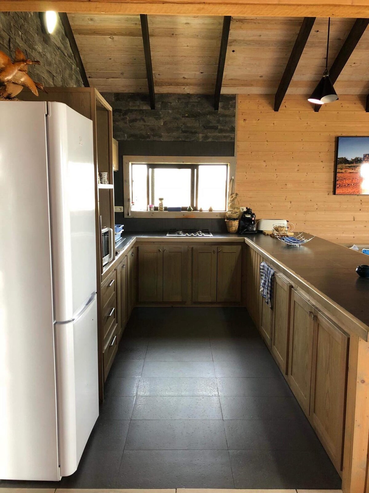 Beautiful, 2-story wooden house that is located in an absolutely quiet location on a plot of about 7 ha with magnificent views. It is ideal for a small group of friends as well as for a couple or a family. Ideal for those seeking peace and quiet. The house is located on a small swimming lake with a beach and island. Distance to beach and Hammamet city center is about 13 km. With advance notice, grocery shopping can be taken over. We have free-range animals