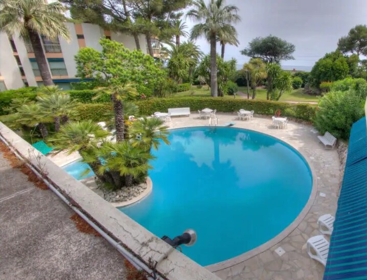 ✨High standing residence✨ - Bay of Cannes 📍only 600 m from La Croisette. 2-room apartment of 50 m2 with large terrace of 24 m2, air-conditioned, equipped for 6 people, overlooking the park with swimming pool and jacuzzi. The apartment is located on the 2nd floor with elevator access. SWIMMING POOL Open 7 days a week from May 1st to October 1st, heated to 27* access with badge. Apartment equipment: - Air-conditioned apartment - Fully-equipped kitchen - Private garage - Motorcycle location -WIFI