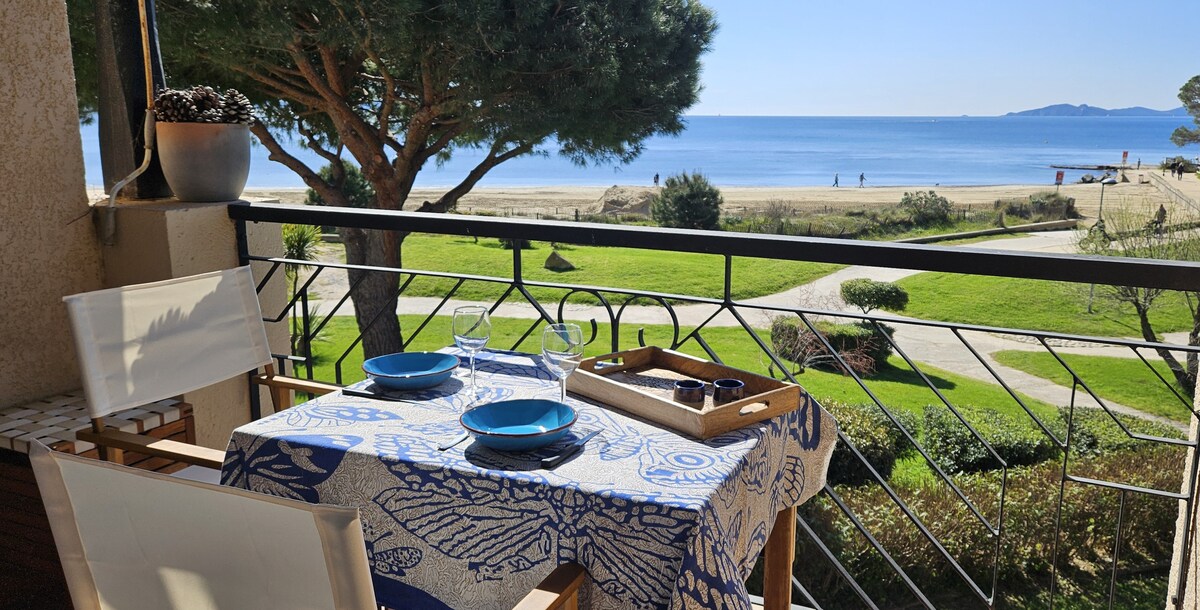 It is a fully equipped studio on Miramar Beach in a quiet and secure residence with a reserved parking space. View of the sea and the islands. Wide choice of restaurants and shops. The beach is at your feet as well as a pétanque court (balls available). At the port, shuttles in summer, to Porquerolles and to St Tropez, in winter depart from the port of Hyeres. L'Argentière Beach is a 15-minute walk away. Check-in after 2pm and checkout before 12pm, self-contained. Booking is possible all year round.