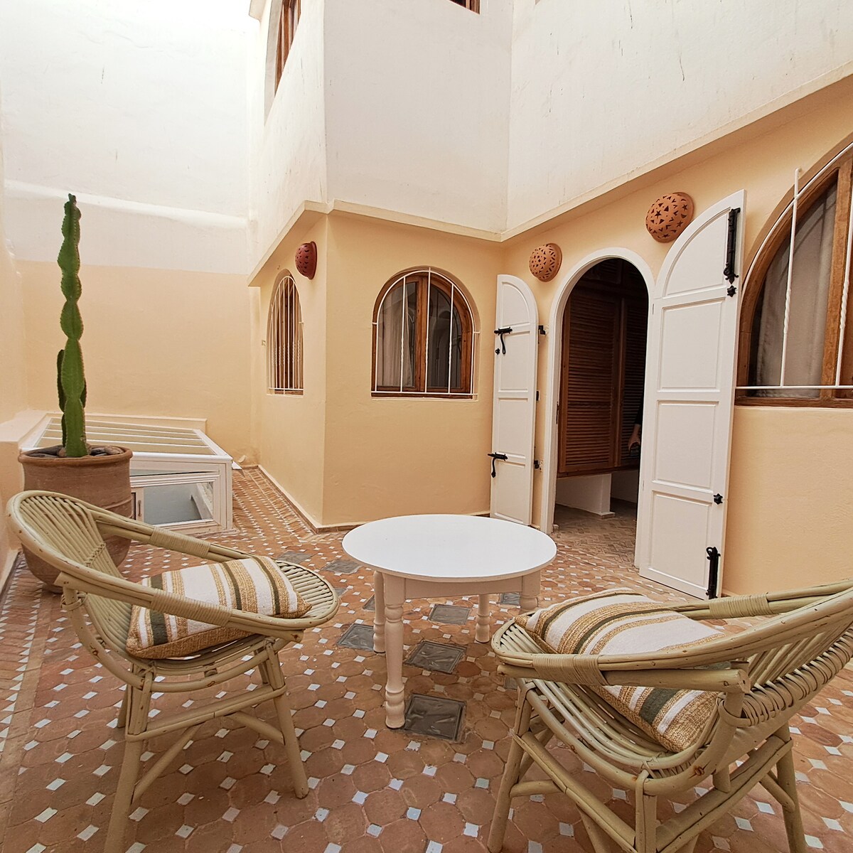 Stay in a charming Riad that offers you the luxury of exclusivity, with sea and Scala views, breakfast and cleaning included. A total immersion in the unique atmosphere of Essaouira. Ideal for a group or family vacation, everyone will find their space while sharing precious moments. With its exceptional location, sunny terraces, and attentive staff, our Riad is the perfect setting for a memorable car-free vacation in the heart of the medina