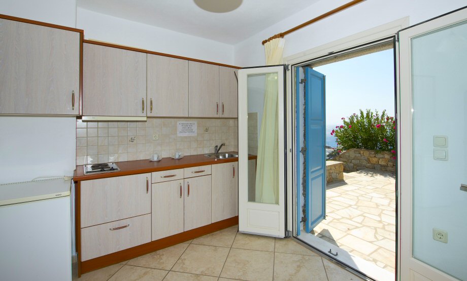 Modern minimal designed studio,sunny,comfortable and fully equipped in Platys Gialos.Private entrance,balcony with sea view,chic and relaxing ambient.A few minutes walk from the most cosmopolitan beaches of the island “Psarou beach”(Nammos), “Platys Gialos beach” and “Paraga beach”(Santanna, Scorpios).Just 3 klm from Mykonos Town.Very close to the bus station and boat bus station. Free Wi-Fi,A/C,TV,fully equipped kitchen,espresso machine,washing machine,iron,hairdryer,safe box,FAK,fire ext.,etc.