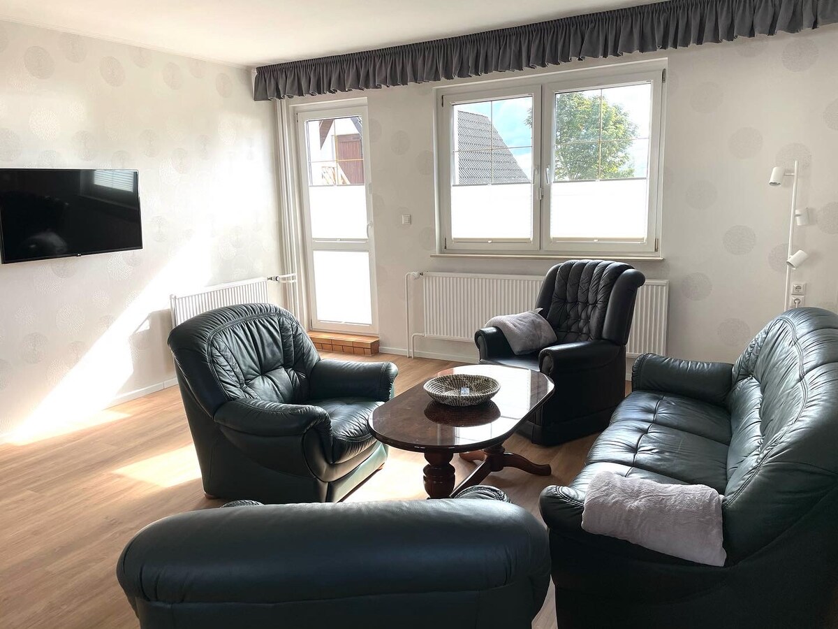 The ideal apartment for large families, groups of friends, seminars. Enjoy a great view from one of your two spacious balconies on the first floor and in the attic. Here you have plenty of space: two bedrooms with king-size double bed, two shower rooms and two living rooms with sofa bed. Bright, light-flooded, lovingly designed rooms. Individually selected furniture in harmonious arrangements in a special ambience.