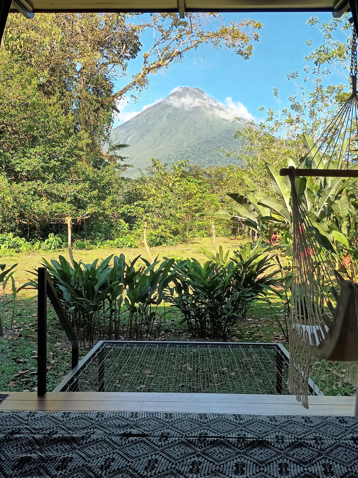Un hospedaje para escapar de la rutina y conectar con la naturaleza, tiene un diseño moderno con una cálida decoración, rodeado de naturaleza donde podrás observar muchas aves, una linda vista al volcán, balcón, terraza, una refrescante piscina y jacuzzi privado. Un lugar ideal para parejas, amigos o para que puedas teletrabajar tranquilamente. Ubicados estratégicamente cerca de todas las actividades principales y a tan solo 2.5 km del centro de La Fortuna y a 1 km de La catarata La Fortuna.
