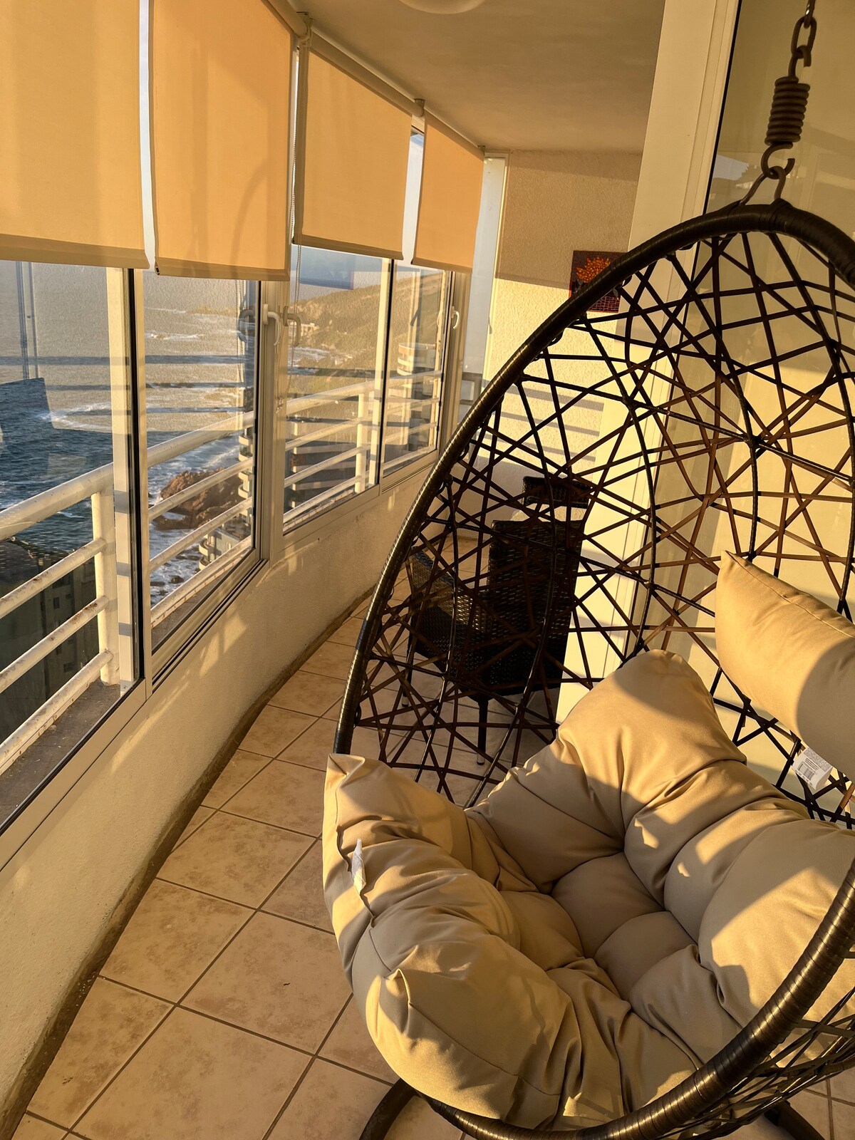 Live unforgettable sunrises and sunsets! Exclusive apartment facing Cochoa Beach, Reñaca, with a panoramic ocean view and a totally peaceful environment. Located on the front line, steps from the sand and renowned coastal restaurants and cafes. Ideal for rest or teleworking, with excellent connectivity to Reñaca, Concón and Viña del Mar. Close to walks, viewpoints and Concón Dunes. A bright, safe and elegant space to enjoy the sea all year round.