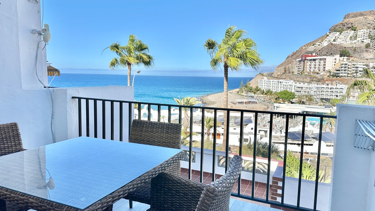 Walk down towards paradise. Located on the front line of a cozy and very quiet complex in Patalavaca, Arguineguin you can enjoy probably the best view in the south of Gran Canaria. The apartment has been completely renovated end 2022 and features all modern facilities. Wake up, open the sliding door, sit back and enjoy your cup of coffee from the terrace while sailing boats pass by. Amazing views on the Anfi beach make the picture complete. In the afternoon you can enjoy gorgeous sunsets.