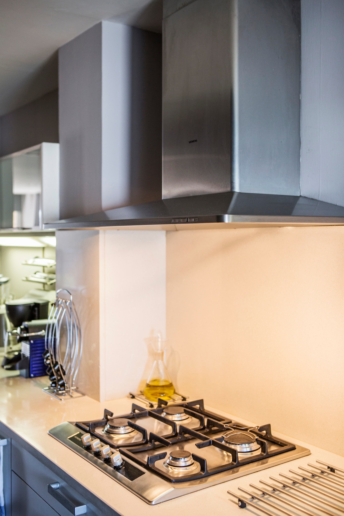 Medblau: Duplex penthouse in an old restored warehouse, totally new. Quality finishes to ensure a unique experience. On the terrace you will find a spa-jacuzzi with hot water. In the garage you can safely leave bicycles, scooters or others as we manage the entire block. It has all the amenities: air conditioning, home automation, Nordic stove, washer-dryer, etc. A commuter train station 50 meters away (€1, 18 min to downtown Barcelona!)
