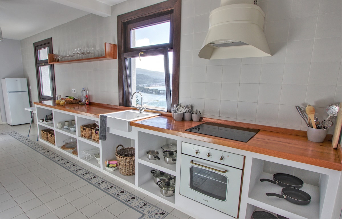 Can you imagine having breakfast in front of the ocean? Relaxing with the ocean at your feet? Go down to the beach at any time or enjoy the views from the glazed porch or garden? Few places have the incredible views and sunsets of this place, just 100m from the blue flag beach Pragueira/Major. You can even see dolphins. It has a kitchen, barbecue and outdoor glass dining room to enjoy this privilege all year round. Excellent location to get to know the Rias Baixas.
