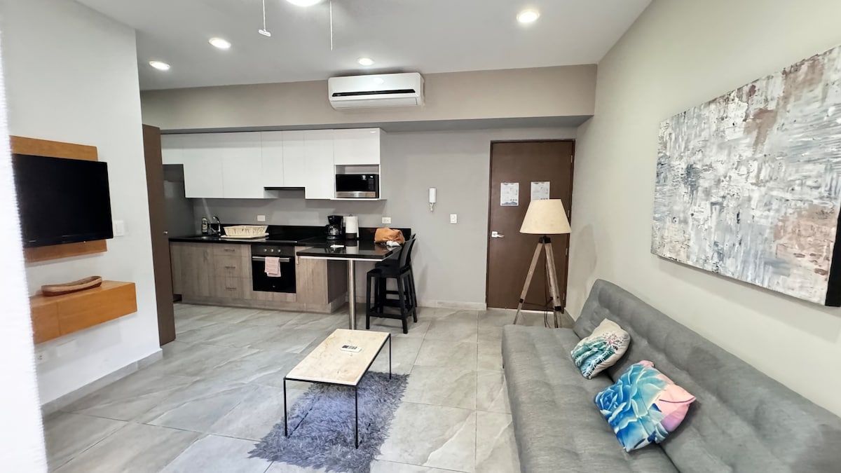 LUXURY condominium owned and operated by Victor, your host. Enjoy a modern and very well located complex in Playa del Carmen. We propose you a 1-bedroom apartment rental with luxury finishes, located in the center of the city close to everything you need. Located on Avenida 20 between Calle 14th and 16th. This well appointed 1 bedroom apartment with roof top pool and well equipped Gym is just 2 blocks from great restaurants and the famous 5th avenue.