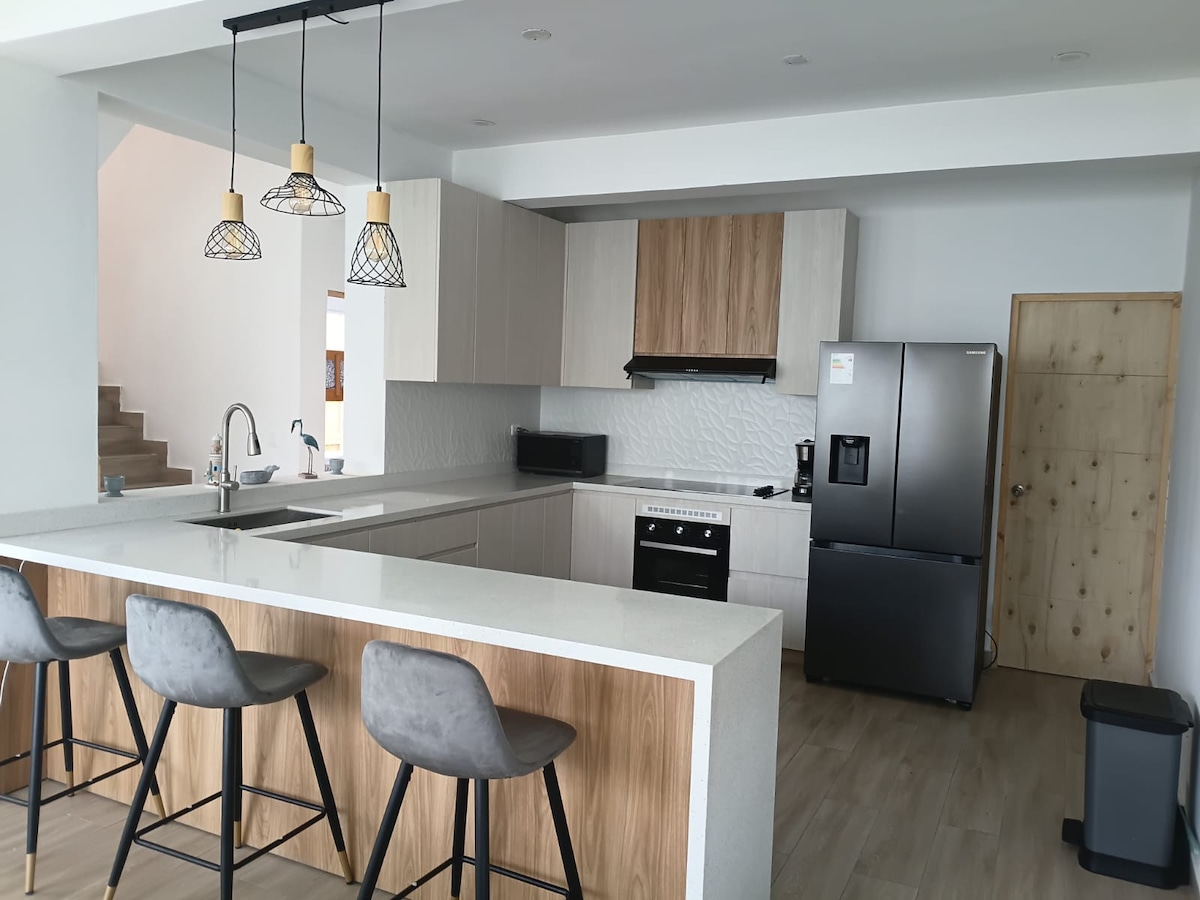 Kalmahome is a dream beach house located in Playa Norte, Punta Hermosa, characterized by the tranquility of the seaside resort. The apartment has 2 double bedrooms, bathrooms included and a terrace, with a grill included and ocean views. Kalma Home is a contrast between comfort, warmth, and Mediterranean design. A brand new apartment designed for all amenities a few steps from the sea where you can live the experience of an unforgettable summer.