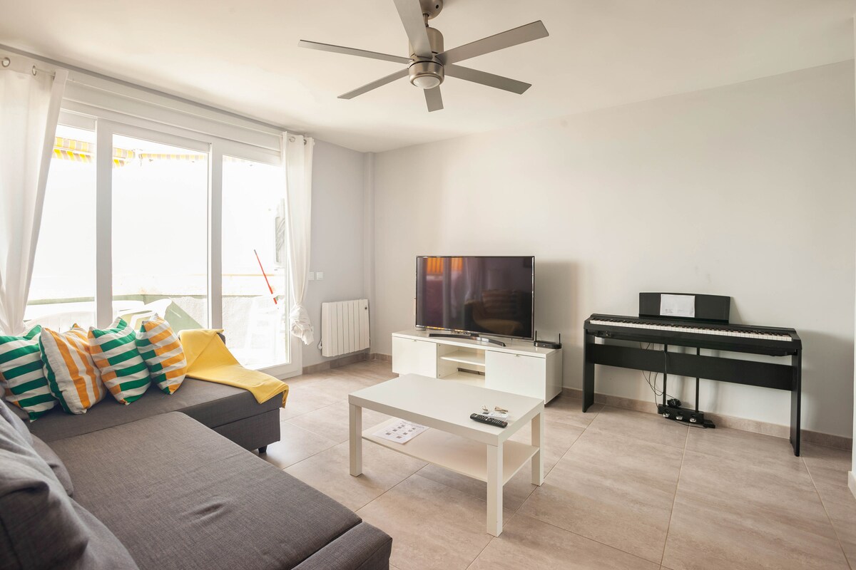 Excelente apartamento recién renovado a estrenar. El apartamento cuenta con internet, persianas eléctricas, nevera americana, horno, microondas, inducción, barra americana de desayuno, tv plana de 47 pulgadas y una magnífica terraza. Las dos habitaciones y el salón cuentan con aire acondicionado (3 aparatos) y ventiladores automáticos con mando a distancia. Los dos baños tienen plato de ducha y calienta toallas. La piscina abre desde mediados de Junio hasta mediados de septiembre.