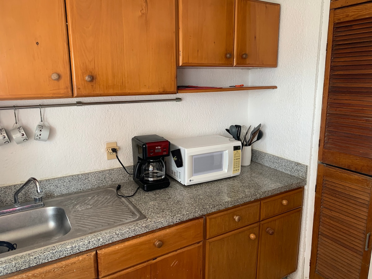 Studio 41. A completely renovated cozy space. It is located 10 minutes from Cancun International Airport and 10 minutes from downtown. The apartment is distributed in 1 bedroom with full bathroom and a living room space with kitchen. The kitchen has a dishwasher, minibar, electric stove, and all the dishes. It is a quiet, comfortable space for short stays and ideal for long stays.