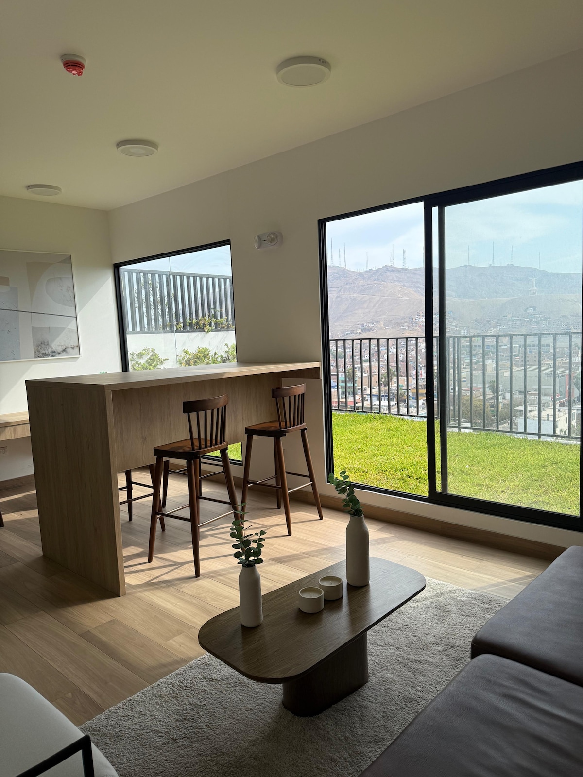 Depa moderno y funcional, disfruta de un café expreso, vistas al mar y al Morro Solar. A 10 min de la playa y de Barranco. Motos scooters automáticas, bicicleta y tours personalizados disponibles. Ideal para recorrer Costa Verde y la ciudad sin complicaciones. Clases de Surf personalizadas. Acceso electrónico, seguridad y ubicación cerca de tiendas y restaurantes.
