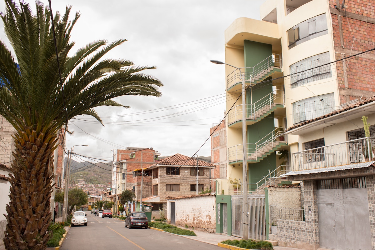 Welcome to our elegant apartment in Cusco, just a 10-minute walk to the historic center. Enjoy stunning views of the city from the living room. The parquet and the neat decor create a warm setting. With self check-in and supermarkets at the foot of the building, your stay will be simple and enjoyable. The apartment is great for solo travelers, "digital nomads" and couples. Experience local life in a safe and quiet neighborhood!
