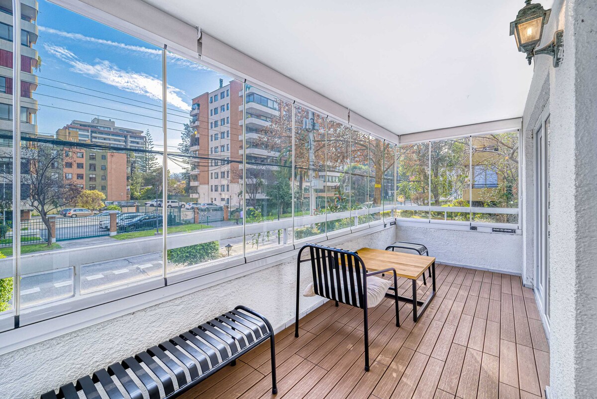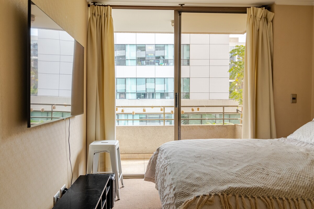 Enjoy a great experience in this save location in Barrio El Golf. Modern and cozy apartment with a privileged location, in the heart of gourmet cuisine and luxury shops of Santiago de Chile "Barrio El Golf". The neighborhood is characterized by its great architectural value and its attractive and varied cultural, gastronomic, and recreational offer. (restaurants, cafes, bars, theaters, museums, design galleries, etc). A few meters away is the metro station ¨Escuela Militar¨ and Plaza Peru.