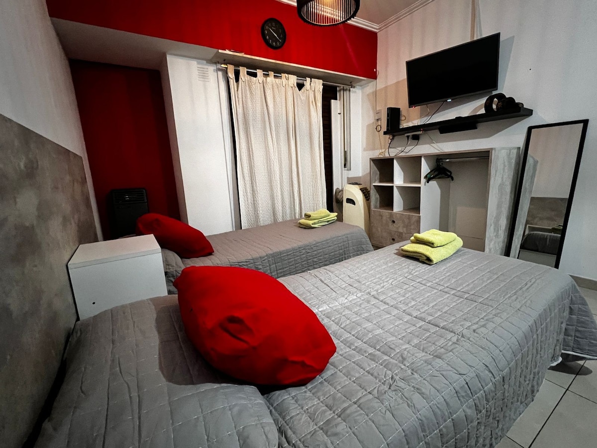 Nuevo monobiente equipado a full en La Plata, con detalles de categoría. Cama matrimonial. Muy bien ubicado, entre Downtown y el Estadio Único de la Plata 100 MB de Wifi, TV con cable, AC frío calor. Superanfitriones con dedicación 24 horas