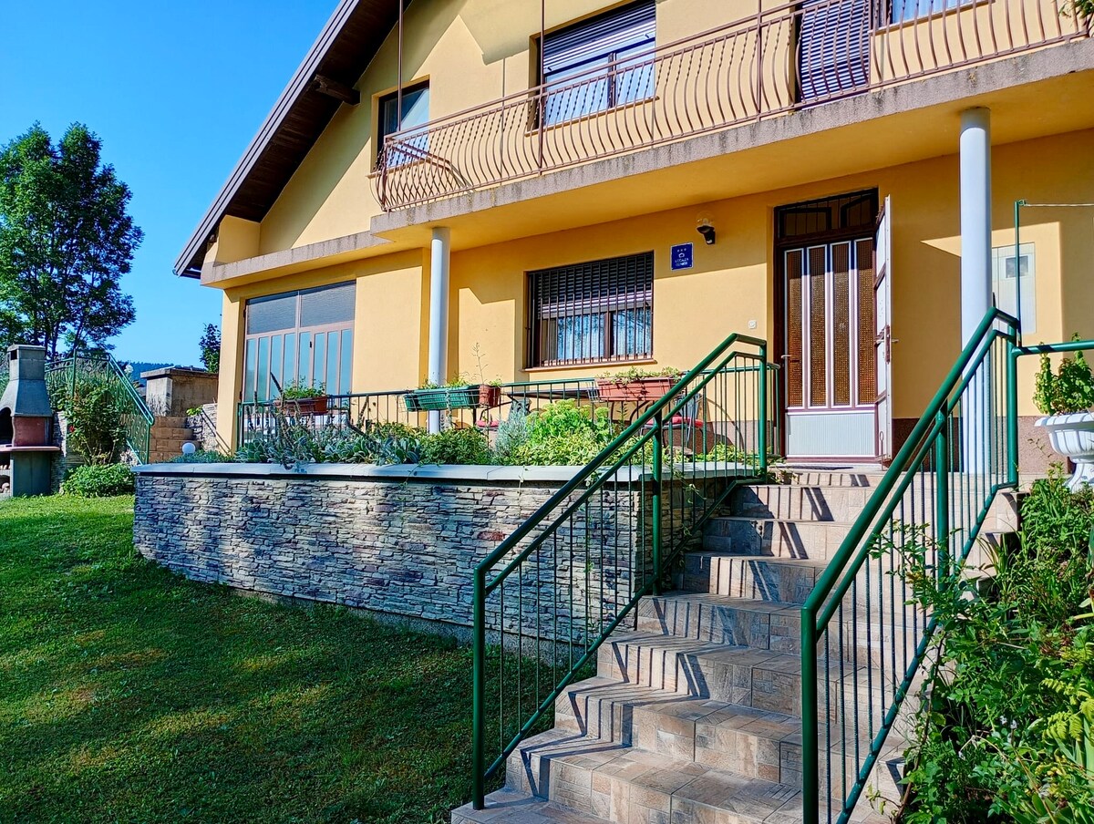 A small appartment with beautifull garden,lot of fruit trees and flowers.Very funny atmosphere with lot of different animals.Summer private terrace with barbecue. Very safe for families with children, with children playground .Perfect for dog lovers also