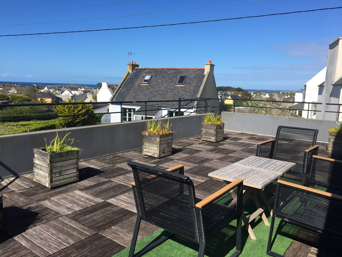 Duplex house with sea view, 2 steps from the beaches