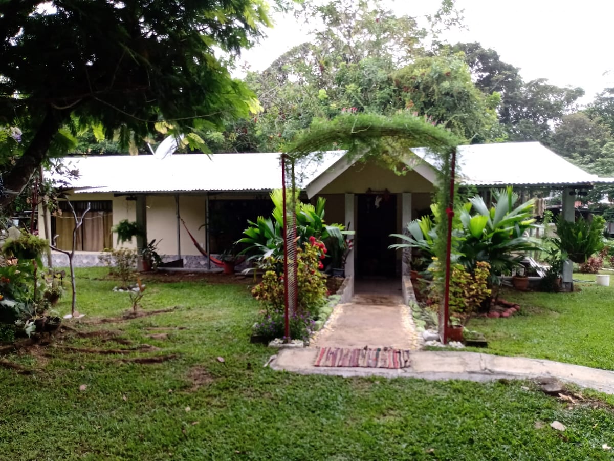 This is a 2- bedroom home with lots of space for entertainment located in a very quiet and safe neighborhood. It is located at less than 5 minutes walking distance from Rt.32 and 15 minutes away from downtown Siquirres.